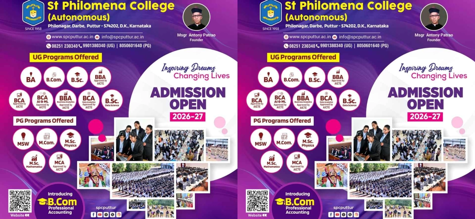 An Autonomous Institution, under the Mangalore University, St Philomena College, Puttur, offers a diverse range of undergraduate and postgraduate programs in arts, science, commerce, and management. The institution attempts to treat the primary stakeholders in Nine UG programs – BA, B.com, B.Sc., BBA, BCA, and BCA (AI & ML) BBA(Business Analytics) BCA (Data Analytics) B.Sc.(Data Science) and five PG programs – MSW, M. Com, M.Sc. (Physics), M.Sc. (Mathematics) and MCA. The college is committed to providing quality education that combines rigorous academic training with holistic development. Its curriculum is designed to equip students with the knowledge, skills, and values necessary to excel in their chosen fields and contribute meaningfully to society.