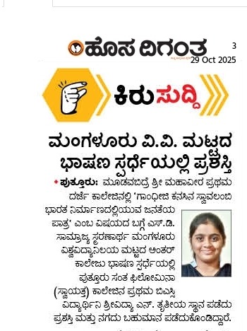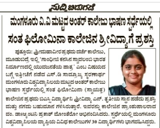 Student Shrividya Secures Prize at Mangalore University-Level Elocution Competition.
