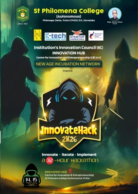 A 32-hour hackathon titled ‘Innovate Hack 2K26' was formally inaugurated today at the postgraduate auditorium of St Philomena Autonomous College, marking the first-ever event of its kind in Puttur. The hackathon is jointly organized by Start-up Karnataka, K-Tech Innovation Hub, the New Age Incubation Network of the college, and the Institution’s Innovation Council (IIC).