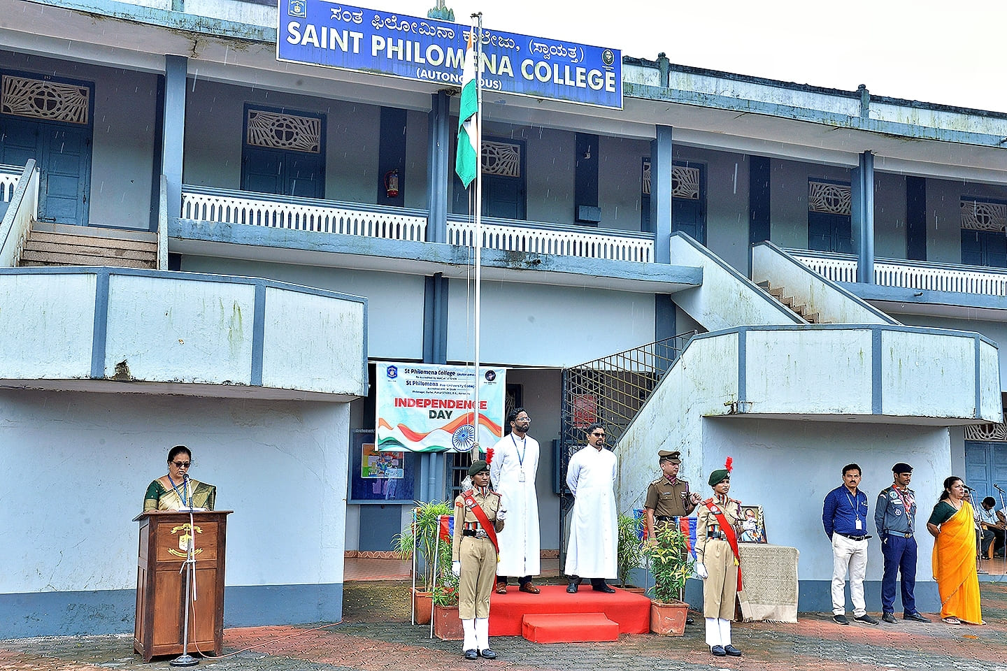Principal of St Philomena College (Autonomous), Rev. Fr. Dr Antony Prakash Monteiro, urged a thoughtful approach to life and patriotism: “Our flag’s three colours inspire us - saffron for sacrifice, white for purity, and green for prosperity. When sacrifice, purity and prosperity live within a person, he is complete. We must give up selfishness, corruption and laziness. True patriotism is shown through hard work, discipline and unity.”