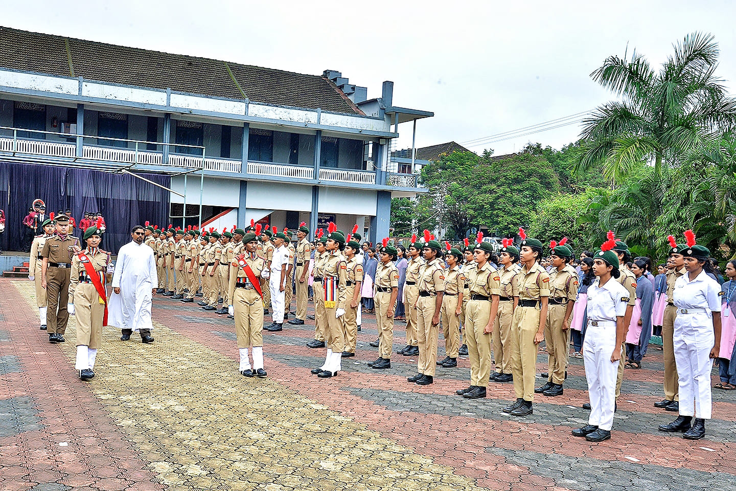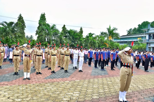 The celebration featured a ceremonial parade led by SGT Diya K, with participation from NCC Army Wing and Naval Wing cadets, Rovers–Rangers, NSS volunteers, Junior and Youth Red Cross units, and the college band troupe. Students from the Performing Arts Association of both the Degree and PU colleges presented cultural performances as part of the festivities.