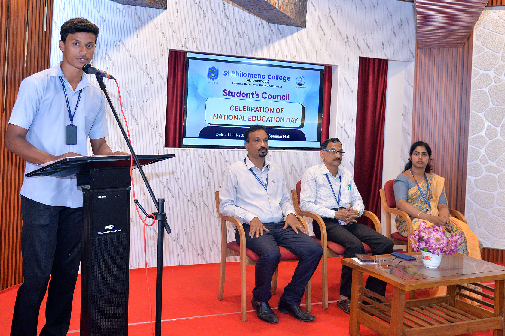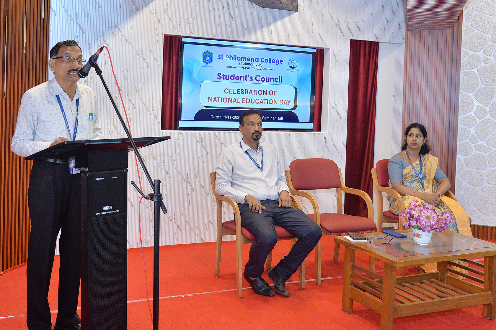 St Philomena Autonomous College, Puttur, celebrated National Education Day in commemoration of the birth anniversary of first Education Minister of India, Maulana Abul Kalam Azad. The event, organized by the Student Council, was held at the Postgraduate Seminar Hall of the college.