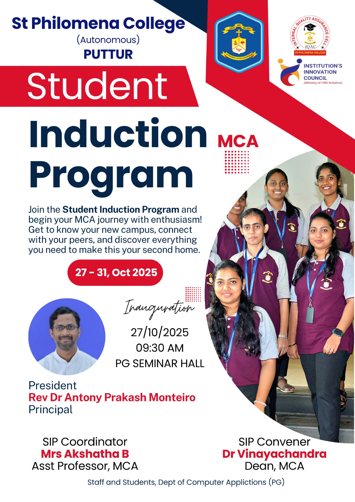 Presiding over the program, Rev. Dr Antony Prakash Monteiro, Principal, addressed the students and emphasized the transformative role of technology in today’s rapidly changing world. “As you embark on your MCA journey, you are entering a field that demands innovation and responsibility. In the coming years, you will encounter various challenges and activities that will test your patience, discipline, and enthusiasm. Consistent effort and professionalism are the keys to success. Do not chase just salary packages. Instead, focus on developing your abilities and skills. True success lies in becoming professionals who think critically, communicate effectively, and act ethically,” he said. He also congratulated the students for choosing St Philomena College for their higher education.