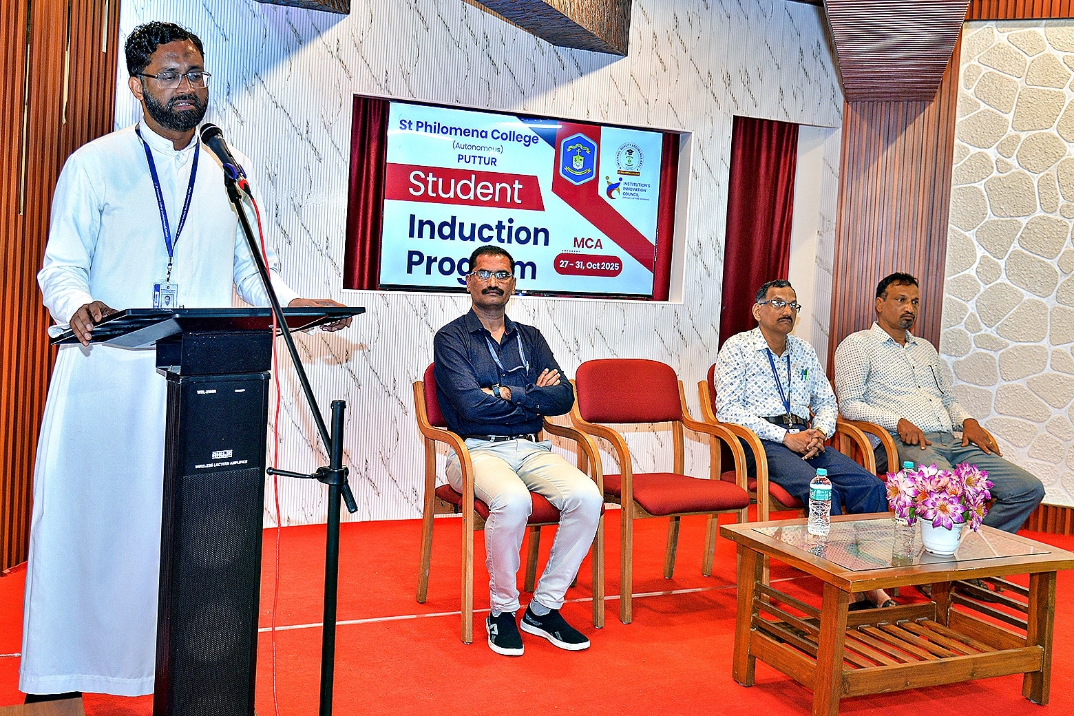 St Philomena College (Autonomous), Puttur, organized an induction program for first-year MCA students at the postgraduate seminar hall of the College. The event commenced with the ceremonial lighting of the lamp.