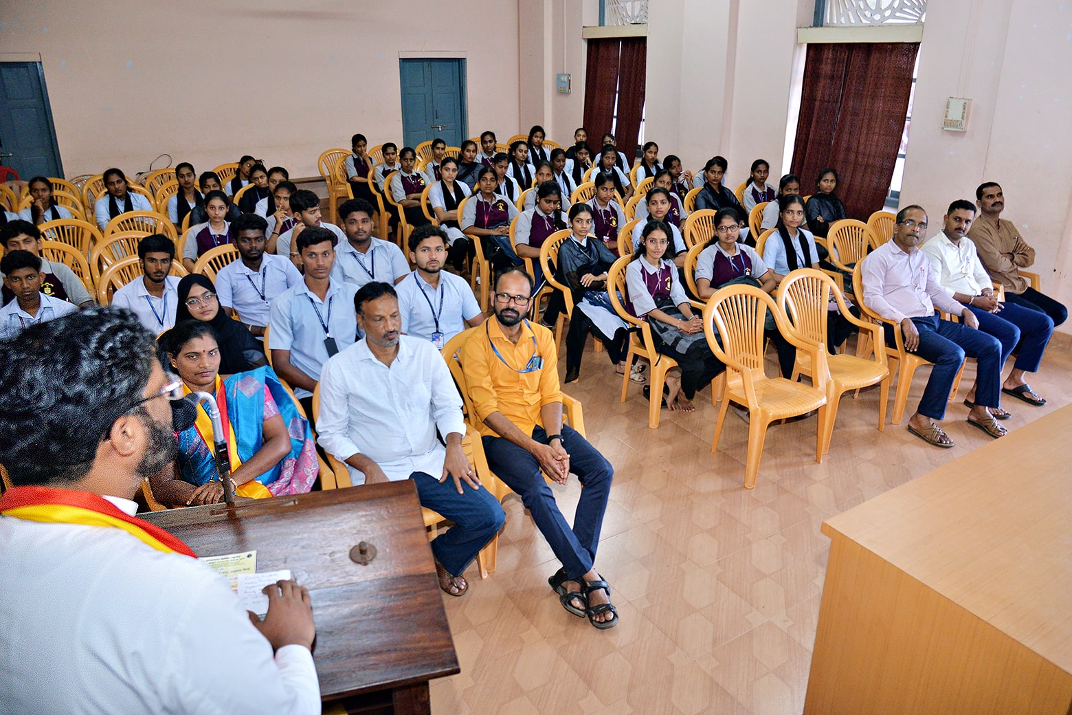Dr Vijaykumar M., Vice Principal and Head of the Kannada Department, encouraged students to actively engage in Kannada writing and contribute to Kannada literature, helping preserve and enrich the linguistic heritage.