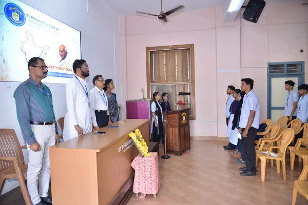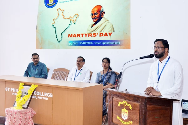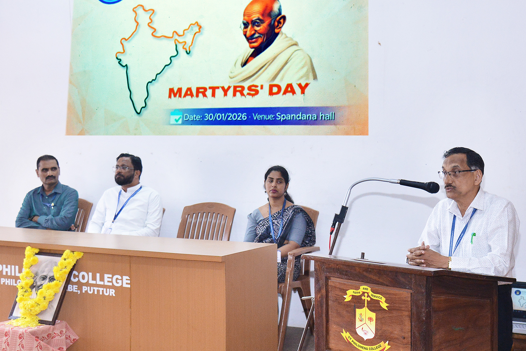 St Philomena College (Autonomous), Puttur Observes Martyrs’ Day on January 30 at the Spandana Hall of the college to honour Mahatma Gandhi and other freedom fighters who laid down their lives for the nation. The programme was organised to commemorate the martyrdom of the Father of the Nation and to instil among students the enduring values of truth, non-violence and patriotism.
