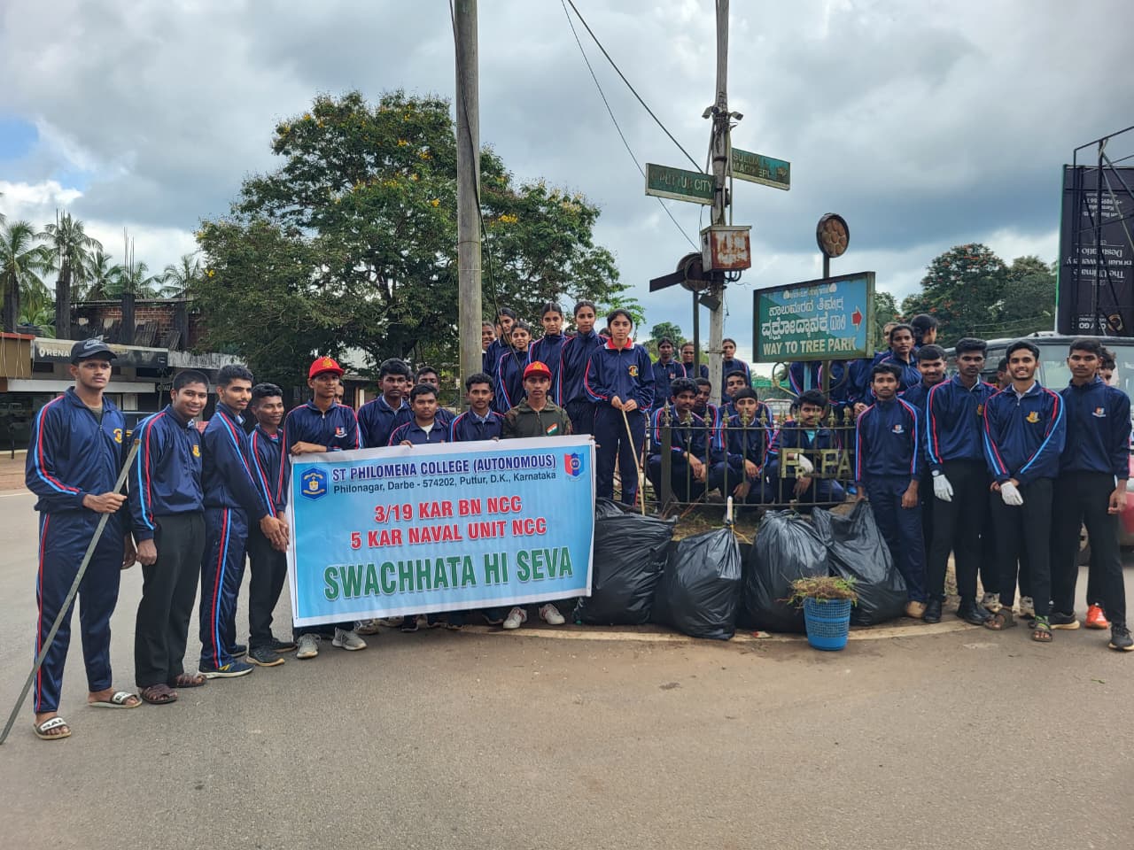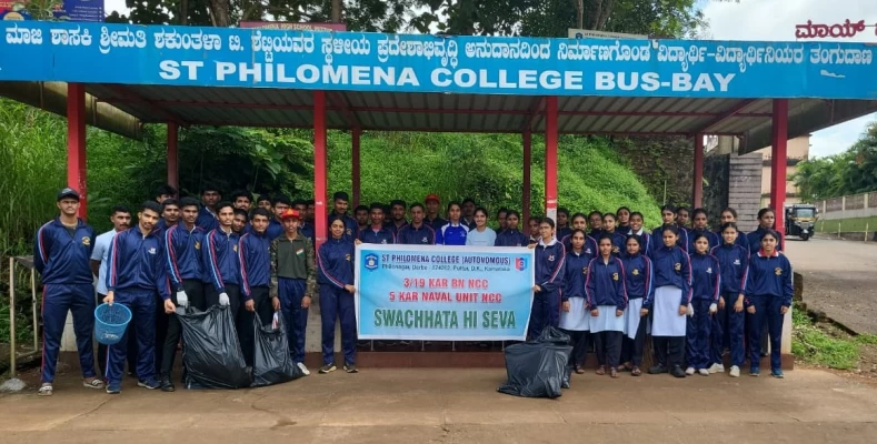 In a demonstration of civic responsibility, the National Cadet Corps (NCC) units of St Philomena College (Autonomous) Puttur spearheaded a “Swachhata Hi Seva” cleanliness drive today, making a significant impact on public spaces in the town.