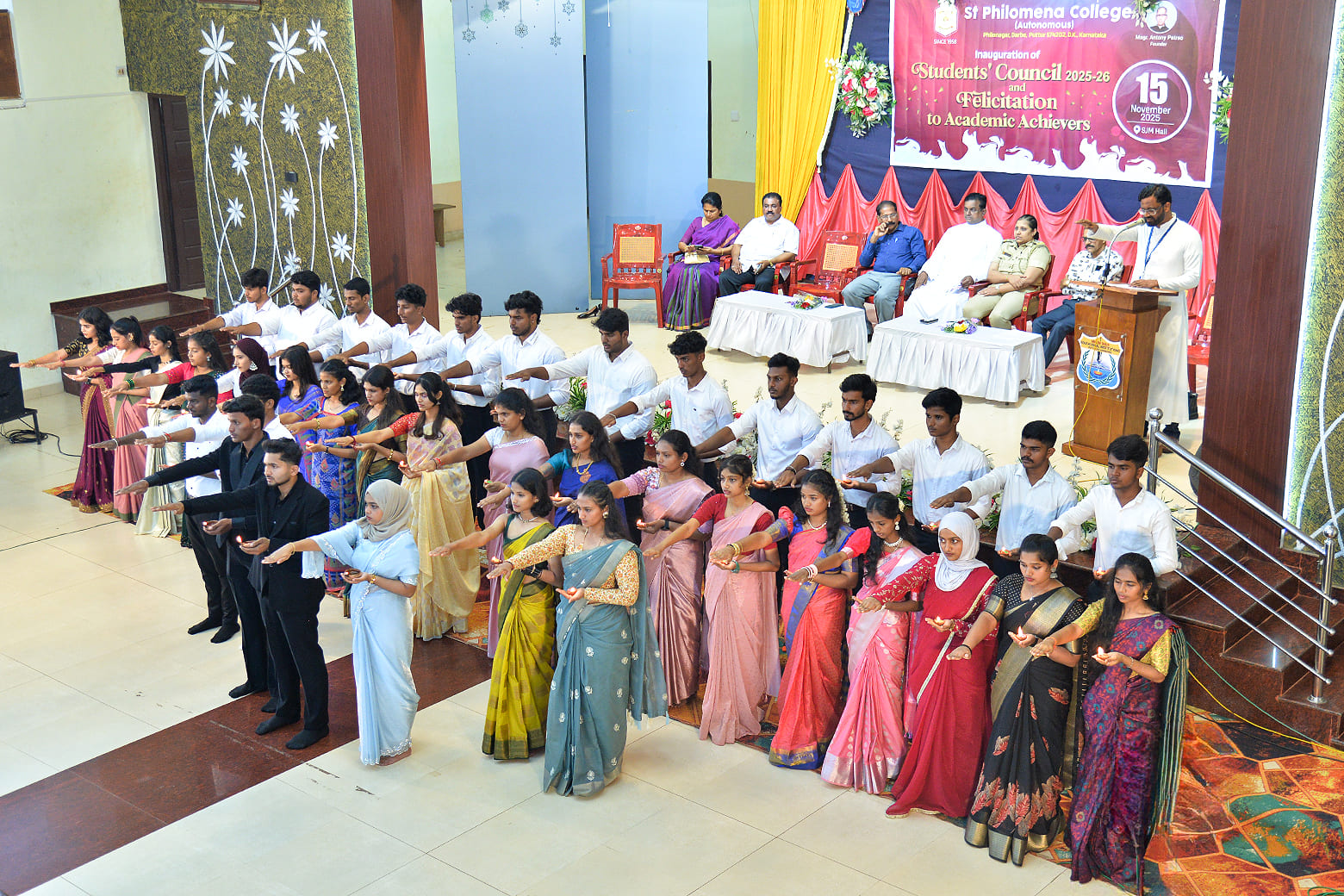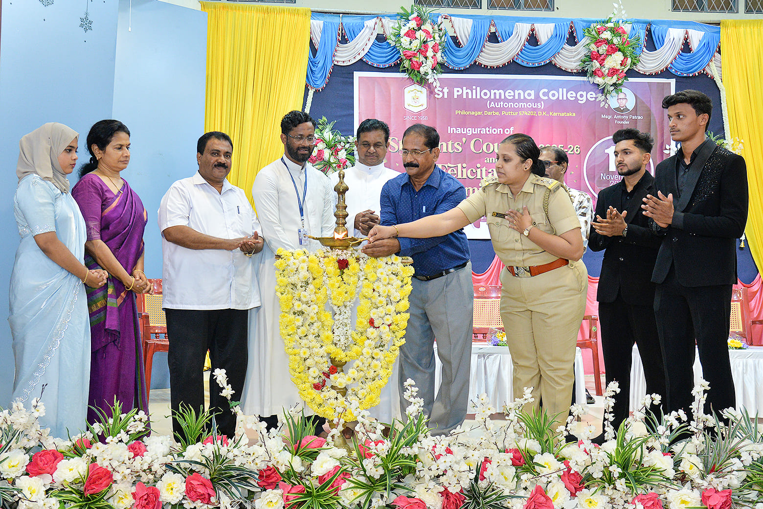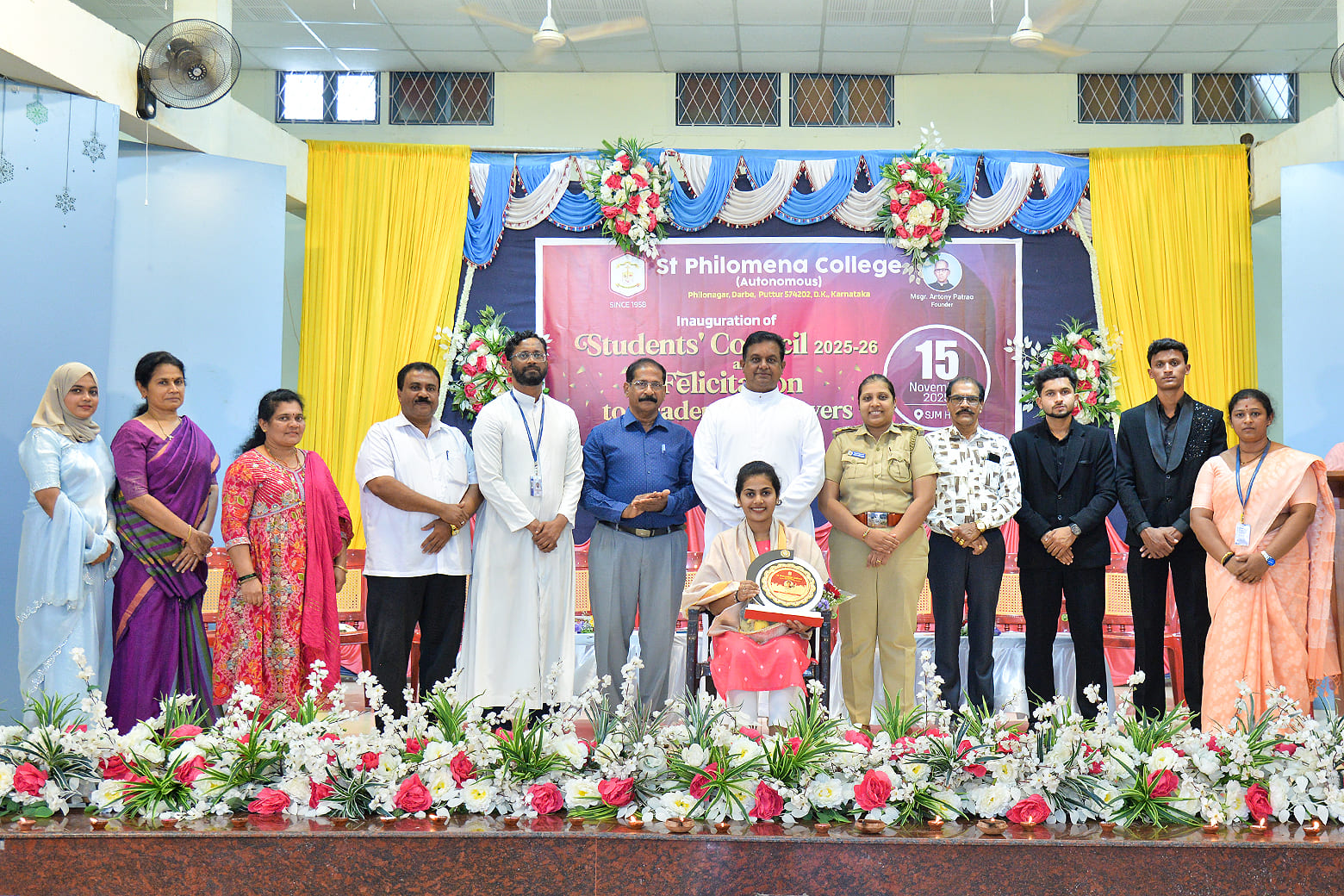 A combined inauguration of the Student Council for the academic year 2025-26 and a felicitation ceremony for university rank holders was held at the Silver Jubilee Hall of St Philomena Autonomous College, Puttur, graced by distinguished dignitaries.